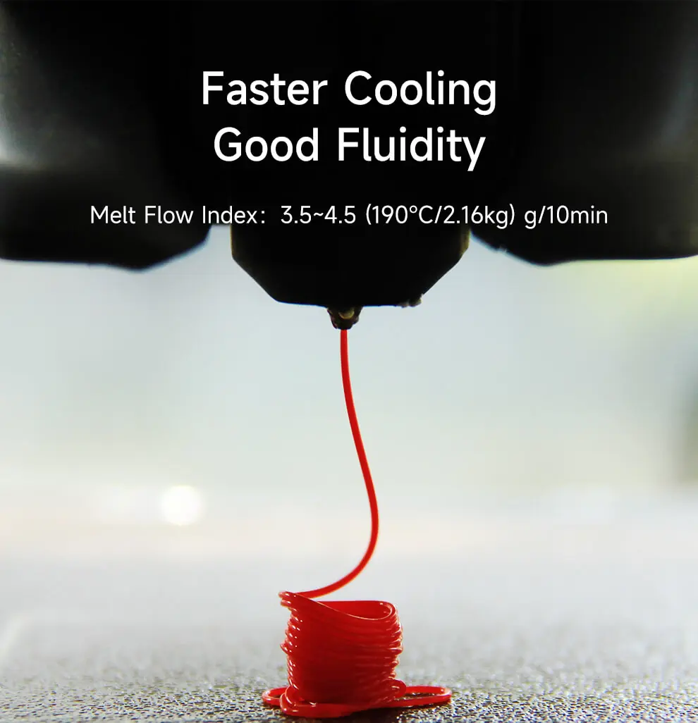 Malzemenin kolay baskılanabilir yapısı, özellikle hem yeni başlayanlar hem de düzenli üretim yapan kullanıcılar için avantaj sağlar. Baskı sırasında rahatsız edici koku oluşturmaması, düşük iplenme eğilimi göstermesi ve baskı sonrası düşük warping davranışı ile sorunsuz bir kullanım deneyimi sunar. Açık kasa yazıcılarda da uygun ayarlarla rahatlıkla kullanılabilir.